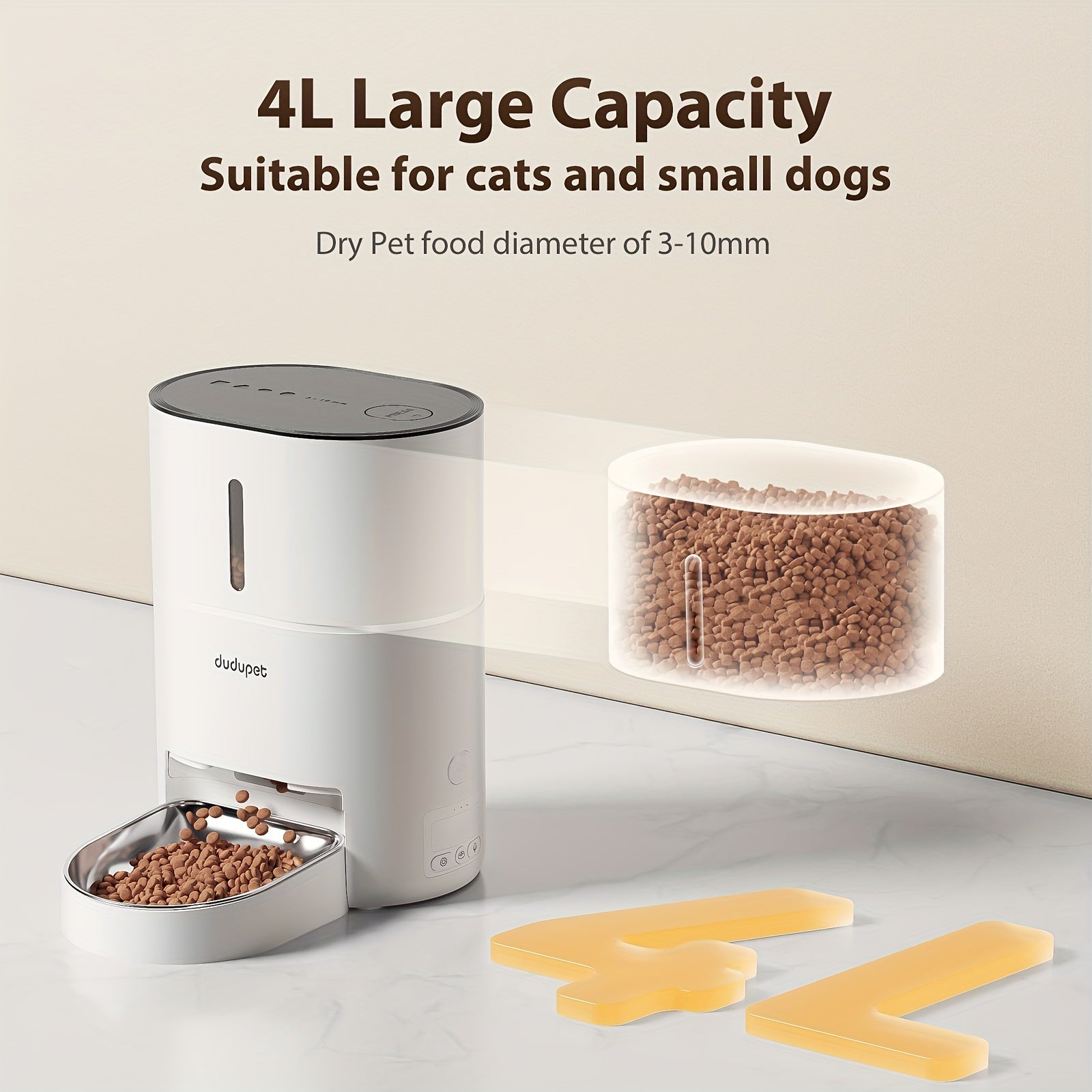 The 4L Smart Pet Feeder offers unparalleled convenience for pet owners. With a WiFi connection, you can control feeding times and portions from your smartphone. This means you can ensure your furry friend gets their meals even when you’re away. Moreover, you can set customizable meal schedules and feed your pet directly through the app, making it easier to manage their diet. Because it's all done remotely, you don’t have to worry about rushing home to feed your pets.